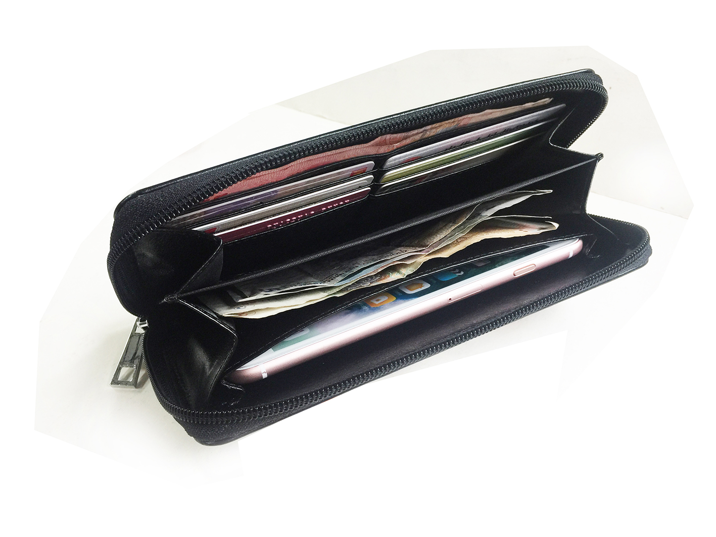 cellphone,car key,cards and money (all in ONE).                                                                                                                                                    1)zipper Wallet Mobile Case design for easy portable carry.                                                                                                                                                 2)inner designed with 3 level pocket to put phone, cards, car key